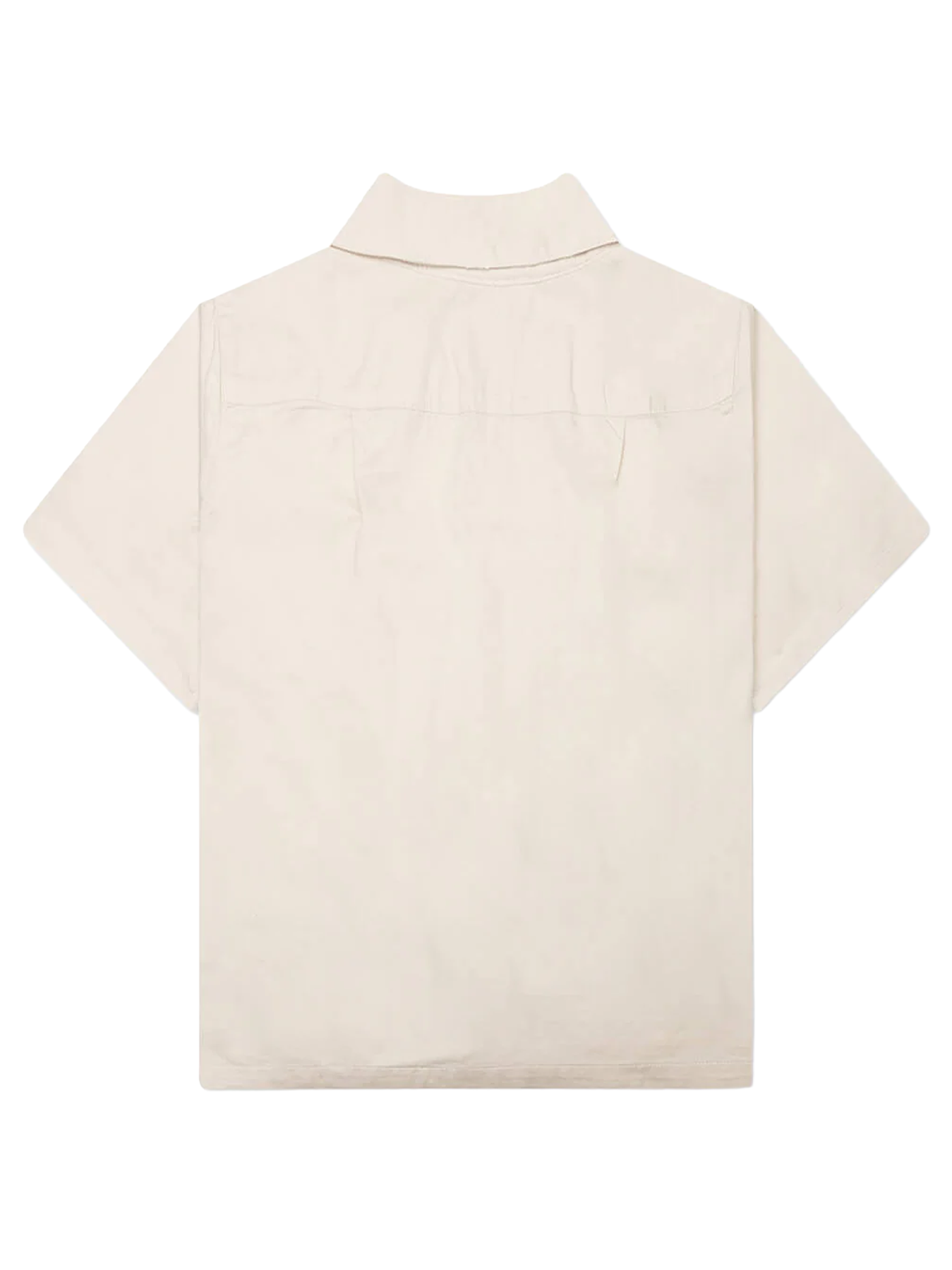 Gallery Department’s Mechanic Shirt in Natural/Cream offers a boxy, oversized silhouette designed for comfort and effortless style. Crafted with short sleeves, a spread collar, and distinctive custom buttons, this shirt features double front pockets that blend functionality with a timeless aesthetic. Ideal for everyday wear, it combines classic design elements with a contemporary fit, making it a versatile addition to any wardrobe.