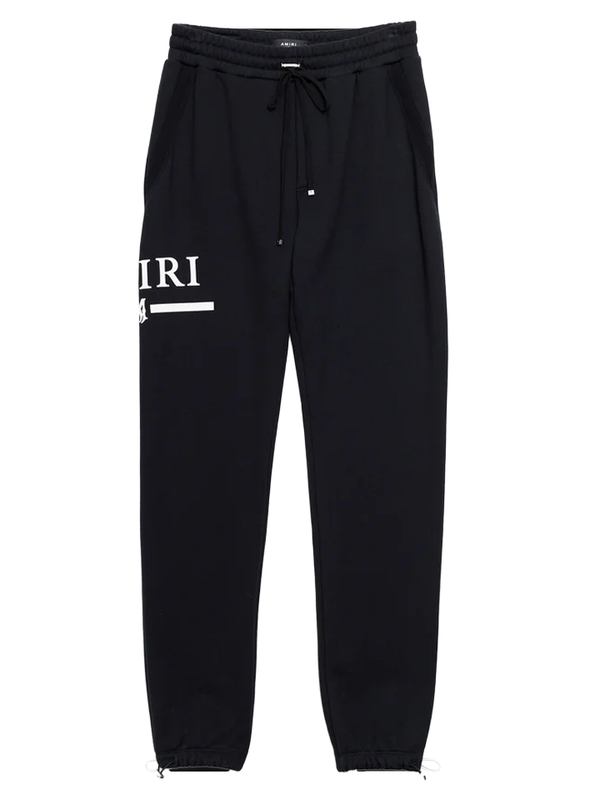These Amiri MA Bar Joggers in Black combine style and functionality with a printed logo on the front and a classic straight cut. Crafted from 100% cotton, they offer breathable comfort, while the elastic waistband with drawstring ensures a customizable fit. Two side pockets provide convenient storage, and elasticated ankles maintain a secure, comfortable fit throughout the day.
